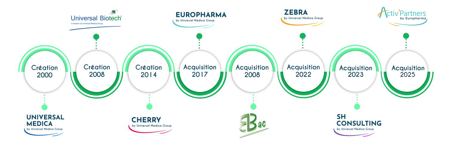 Universal Medica Group est un acteur clé du secteur de la santé, structuré autour de plusieurs filiales spécialisées. Chaque entité apporte une expertise unique et complémentaire, permettant d’accompagner les laboratoires pharmaceutiques, les entreprises de biotechnologie, les fabricants de dispositifs médicaux et autres acteurs de la santé à chaque étape du cycle de vie de leurs produits.
